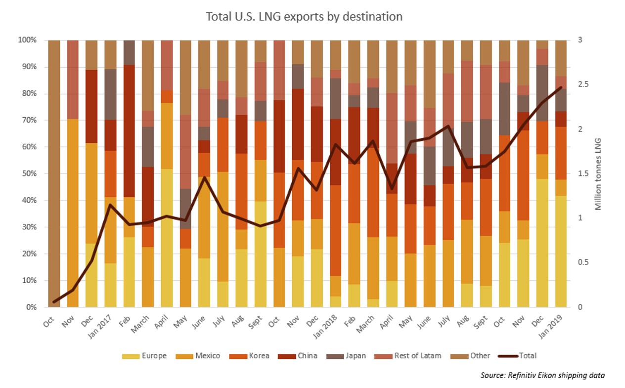 Europe is now the top buyer of U.S. liquefied natural gas after a near fivefold spike in U.S. LNG sales to the continent this winter, overtaking South Korea and Mexico, a Reuters analysis has showen. Profit rather than politics is driving the increase.