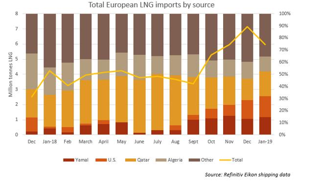 Since December, however, U.S. LNG has outgunned supply from Yamal into Europe, the Refinitiv Eikon data showed.